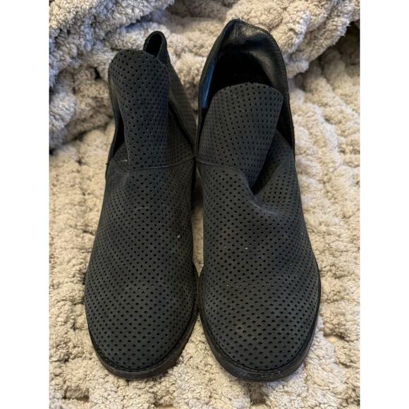 Eileen Fisher leaf ankle bootie tulip split perforated leather black/gray Size 9