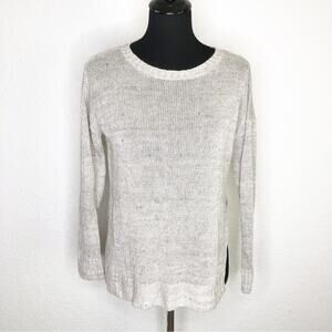 Eileen Fisher light gray linen side slit hem sweater size Petite