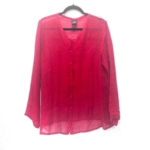 Eileen Fisher linen Vibrant Red Sheer Blouse Large