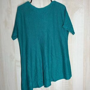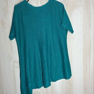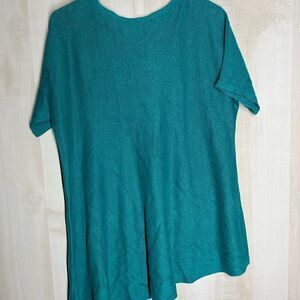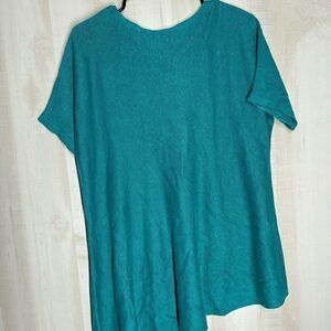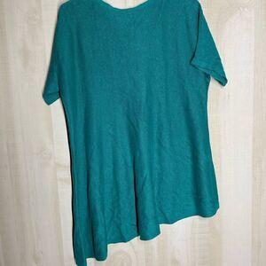 Eileen Fisher linen turquoise short sleeve tunic top, size small