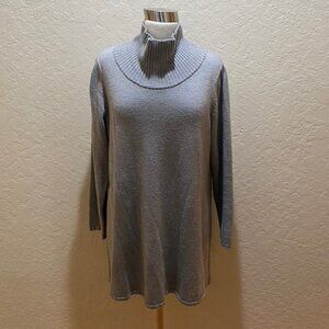 Eileen Fisher - long mock turtleneck sweater / tunic - great over skinny jeans or leggings. Size L