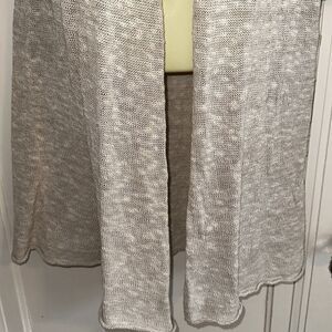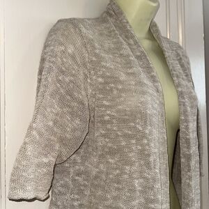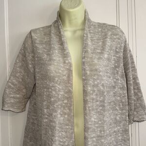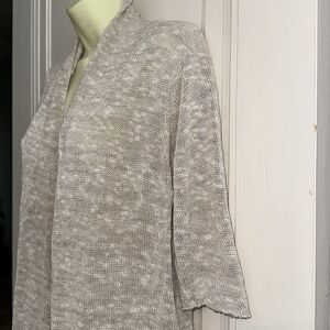 Eileen Fisher oatmeal color open front short sleeve long linen/cotton sweater