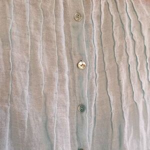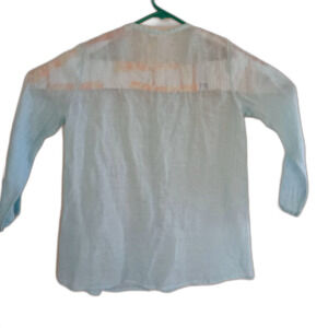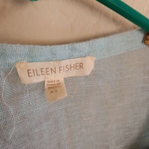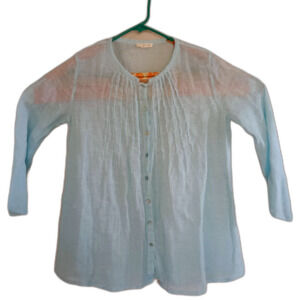 Eileen Fisher organic linen Italian blouse button down blue turquoise S