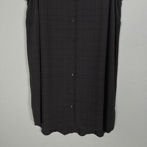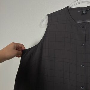 Eileen Fisher plus size 1X tunic top sleeveless mandarin collar gray plaid tence