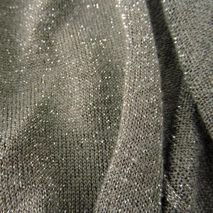 Eileen Fisher elegant cardigan. Open front, long sleeves, light weight thin knit with touch of lurex