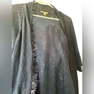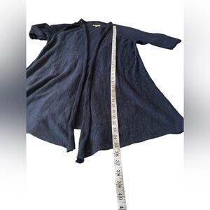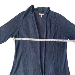 Eileen Fisher short sleeves drape front linen cardigan blue size medium