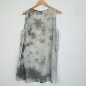 Eileen Fisher silk cotton blend sleeveless tunic in gray white tie dye. Large
