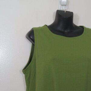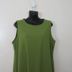 Eileen Fisher size Large Green Tank Dress Sleeveless Crew Neck Basic NEW