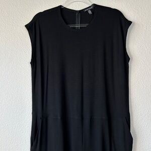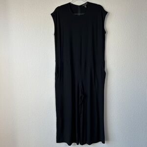 Eileen Fisher size M jumpsuit stretch jersey wide leg crop black cap sleeve