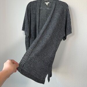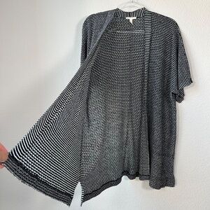 Eileen Fisher size M long Kimono cardigan short sleeve organic linen white black