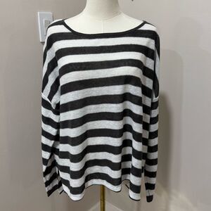 Eileen Fisher striped scoopneck relaxed light weight sweater Large