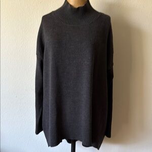 Eileen Fisher sz M 100% merino wool mock turtleneck charcoal sweater great cond