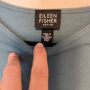Soft! Flawless deep teal-ish colored petite tee by quality maker Eileen fisher. New collar tag style. Minimalist classic piece.