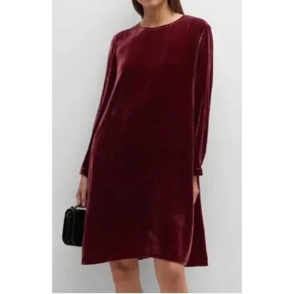 Eileen Fisher woman velvet long sleeve burgundy red dress Small