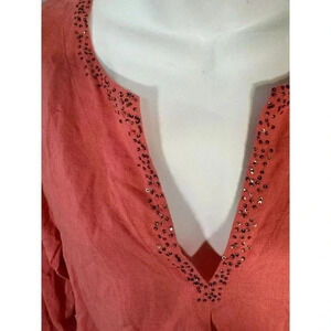 Eileen Fisher womens blue 100% Irish linen popover top Size M sequin 3/4 sleeve