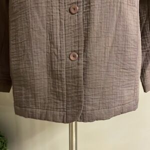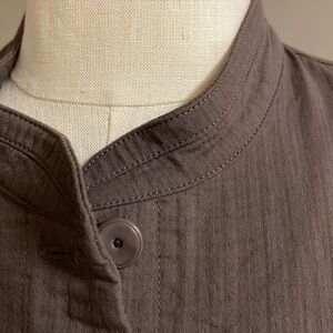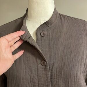 Eileen fisher solid color Med brown button down jacket blazer / up collar option