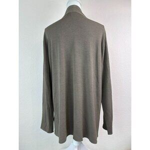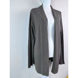 Eileen Fisher women's large grey brown open front cardigan silk blend stretch