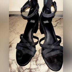Eileen Fisher women’s noni black leather strappy block heel 8.5 formal party