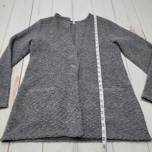 Beautiful Eileen Fisher oversized cardigan! Super soft blend of organic wool, merino wool and alpaca! Double front with stitched pockets and a bit of rouching on the back. In excellent condition, size large.