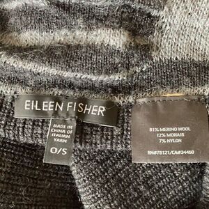 Eileen Fisher wool mohair infinity scarf in black and grey 20” x 17”