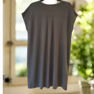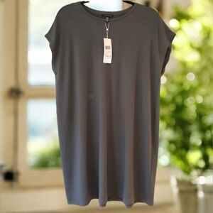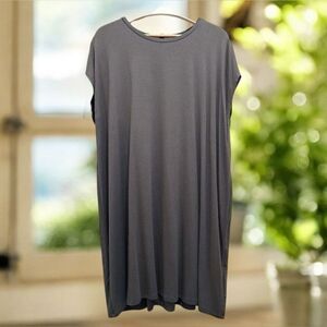 Eileen Fisher $178 Crew Neck Boxy T-Shirt Dress Slate Gray Size M Medium Minimal