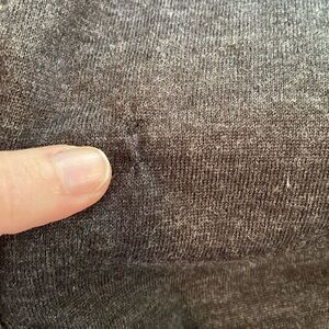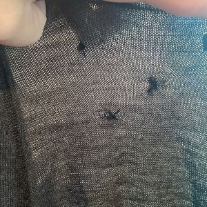 Multiple small spots have been mended, visible when looking at the dress in the light, as shown in photos. Several in the front and several in the back, shown in photos. Some have slight 'pulling' where they were mended, visible in photos