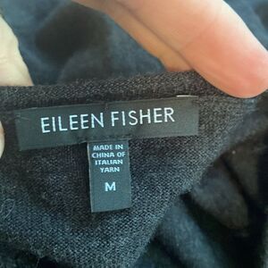 Eileen Fisher Black 100% Merino Wool Long Sleeve Asymmetrical Hem Dress Size M