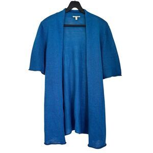 Eileen Fisher Blue Teal Linen Knit Open Cardigan Size Medium