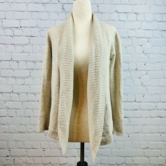 Eileen Fisher Italian Yarn Alpaca Wool Blend Khaki Open Knit Cardigan XS