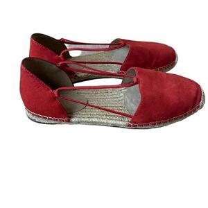 Eileen Fisher LEE Orange Red Nubuck Leather D'Orsay Espadrilles Flats Size 8