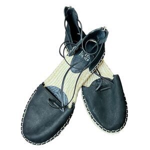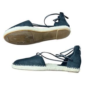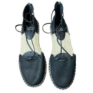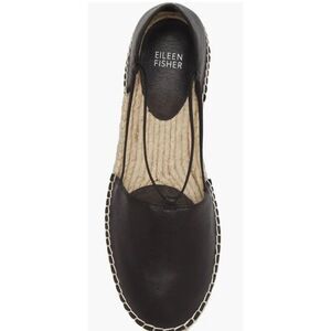 Eileen Fisher Lee Espadrille Flats in Black Leather NWOB Size 6