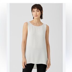 Eileen Fisher NWT Silk Georgette Crepe Bateau Neck Tank in Bone Large MSRP $218