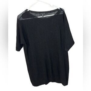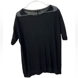 Eileen Fisher Open Knit Mesh Top Black Women Medium Linen