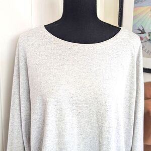 Description: Eileen Fisher Organic Cotton Speckle Pull On Jewel Neck Top Cotton Minimalist Capsule Quiet Luxury Preppy Top MD, comfy silhouette, easy to layer or wear alone