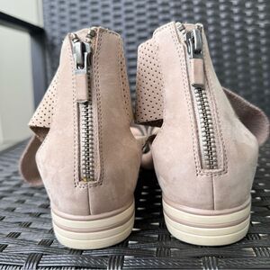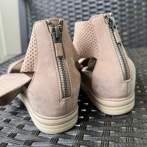 Eileen Fisher Perforated Nubuck Leather Crisscross Platform Sandals 6.5 Blush Zip Back