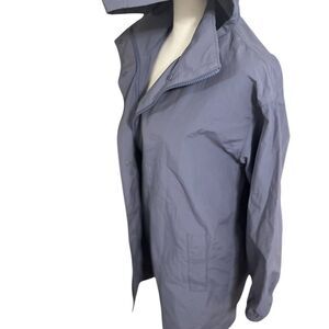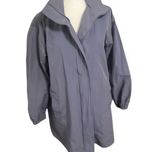 Eileen Fisher Stand Collar Hidden Hood Organic Cotton Blend Coat In Twilight Xs