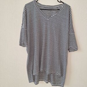 Eileen Fisher Striped Organic Linen Jersey V-Neck Tunic