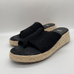 Eileen Fisher Tarry Espadrille Wedge Slide Black Suede Platform Wedge Sandals Size 11 Womens