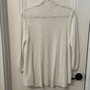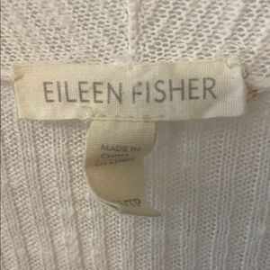 EUC- This Eileen Fisher open front, 3/4 sleeve cardigan sweater in a light weight white linen cotton blend offers a timeless knit design, perfect for layering. Crafted with attention to detail, it provides a cozy and soft feel, making it an essential addition to any wardrobe. Its classic style ensures versatility and elegance for any occasion. Oversized fit