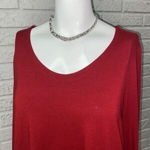 • Eileen Fisher Women Red Long Sleeve Asymmetrical Hem Blouse