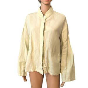 Eileen Fisher Women’s Size Large Light Soft Yellow Green Button up Flowy Top