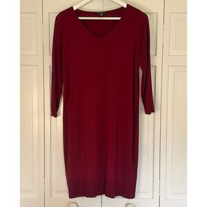 Eileen Fisher maroon tencel jersey vneck dress size M