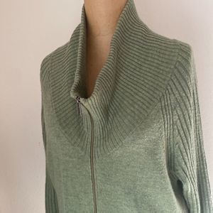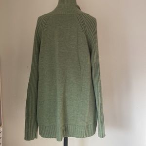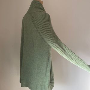 Eileen Fisher sz M green 100% merino wool zip front cardigan cowl neck gorgeous!