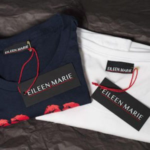 Eileen Marie' Women's Crew Neck Short Sleeve 100 % organic cotton Tee in WHITE, feminine fit; Made In USA/Designed and Printed in NY. Signature Design by Eileen Marie. View EileenMarie.net for reference