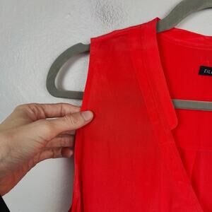 Eileen Silk Crepe Top Womens Medium Orange Red Button Up Sleeveless Minimalist