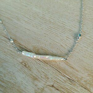 Silver toned necklace with bar shaped pearl. Excellent condition.