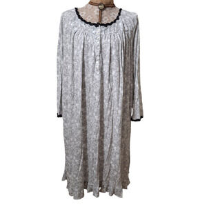 Eileen West Black and White Paisley Long Sleeve Nightgown Size 1X