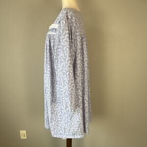 Eileen West Blue Floral Cotton Jersey Knit Nightgown Plus Size 2X Long Sleeve