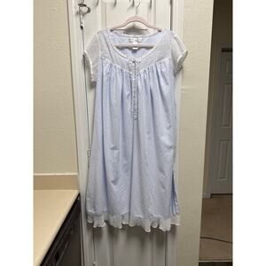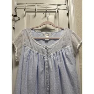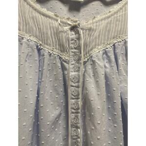 Eileen West Cotton Textured Midi Blue Nightgown Ruffle Hem Size Medium