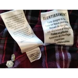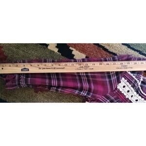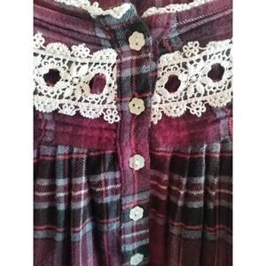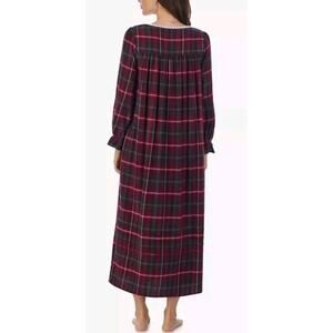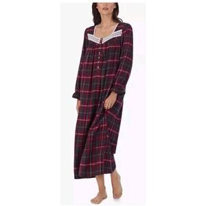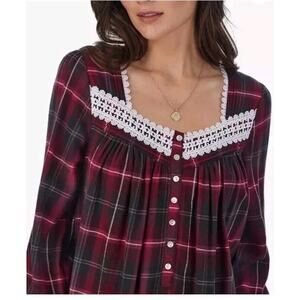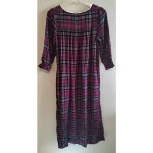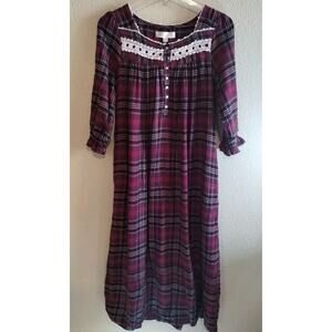 Eileen West Dark Pink Plaid 3/4 Sleeve Lace Ruffle Pockets Flannel Nightgown S
